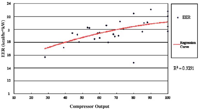 Figure 4: EER vs. output ratio of a digital scroll compressor.